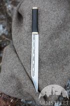 Notas. alba es un cuchillo seax, de unos 40 cm con unas runas que la vinculan con ocaso, una hacha. Mito contado por un viejo del pueblo: Había una vez, en tiempos olvidados, un remoto pueblo habitado por humanos corrientes. Durante muchos años, fueron acosados por un mal oscuro que los sumió en la más profunda miseria. Pero un día, un joven héroe (o tal vez era una valiente mujer, pues las historias se transforman con el paso del tiempo) se topó con un espíritu ancestral. Este ser etéreo otorgó al joven una fuerza celestial, capaz de iluminar el camino hacia la salvación tanto para él como para su pueblo, erradicando así todas las adversidades que los atormentaban. Tan monumental suceso dejó una huella en ese pueblo, obteniendo cuernos de carneros que les recuerdan su pasado