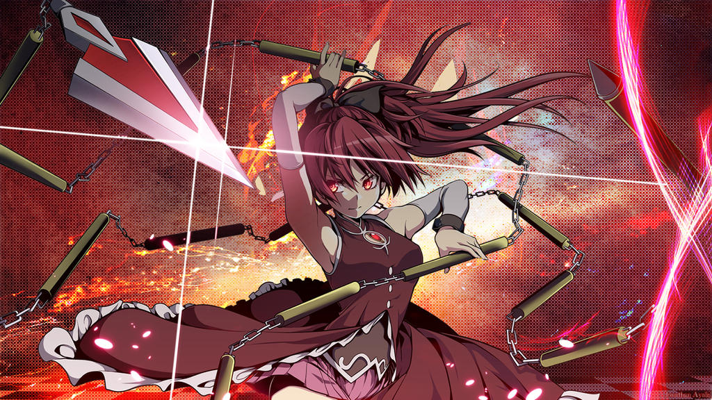 En su forma de Puella Magi usa un vestido rojo sin mangas y con volantes blancos, una camisa negra y una falda rosada. Usa mangas blancas que terminan en mangas negras y mantiene su lazo negro en su cabeza, el cual amarra su cabello en una cola de caballo. Viste medias negras y botas rojas con líneas blancas. Su Gema del Alma es un óvalo rojo que se encuentra en su pecho y que parece la pupila de un ojo, debido al corte de ojo en su vestido. Su arma es una lanza que puede dividirse en múltiples fragmentos unidos con cadenas, funcionando como un látigo que puede usarse para restringir e incapacitar a sus oponentes.